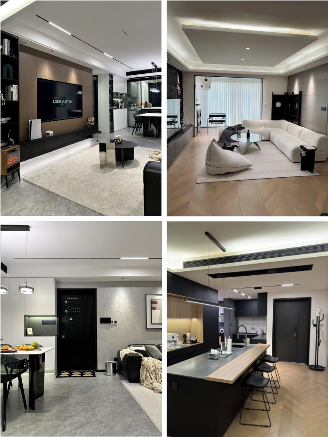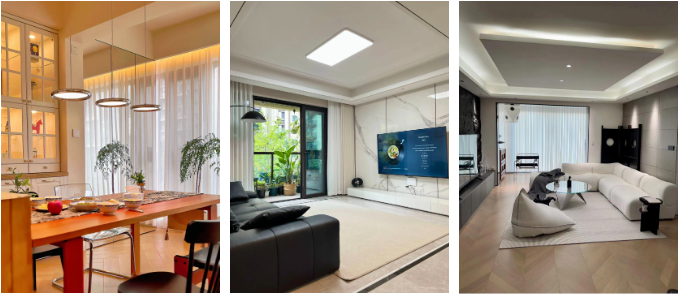 在燈具上偏好以無(wú)主燈營(yíng)造大氣與高級(jí)氛圍,線條利落大氣,極具質(zhì)感;又或選擇簡(jiǎn)約的造型,沒(méi)有繁雜的裝飾,以達(dá)到極致的空間感與采光效果。