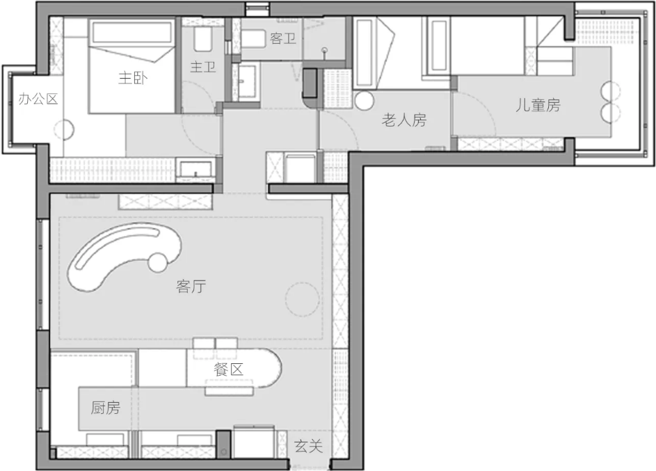 孩子現(xiàn)在喜歡和奶奶待在一起,所以就把原主臥拆成兒童房和長輩房?臻g不夠放兩張2m的床,就將立面空間利用到位,保證睡覺時兩條腿都能伸直。