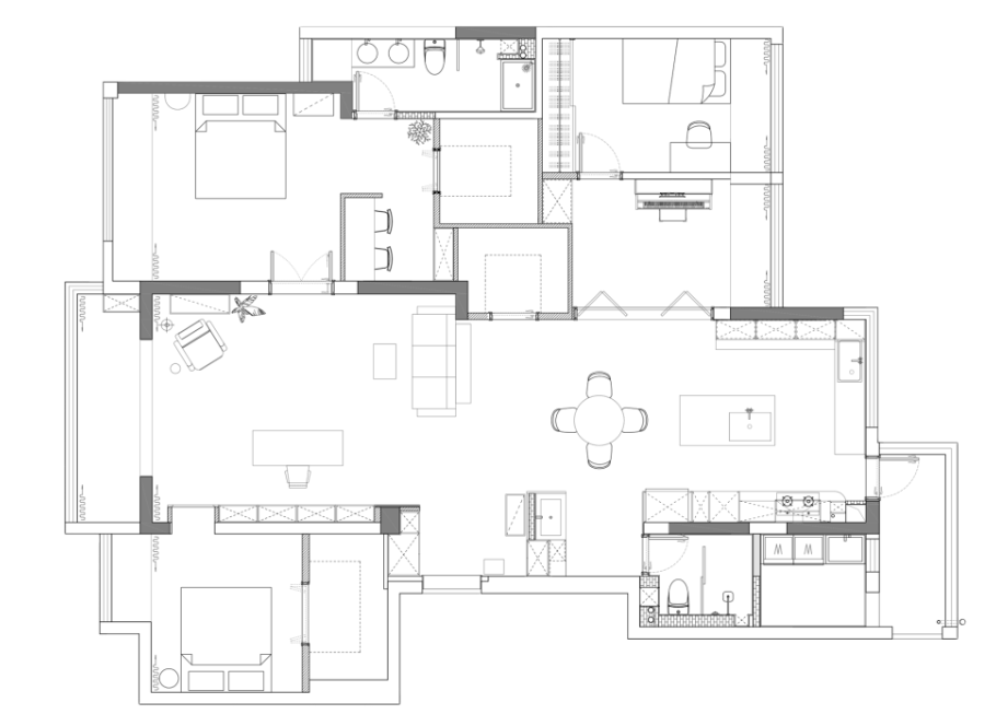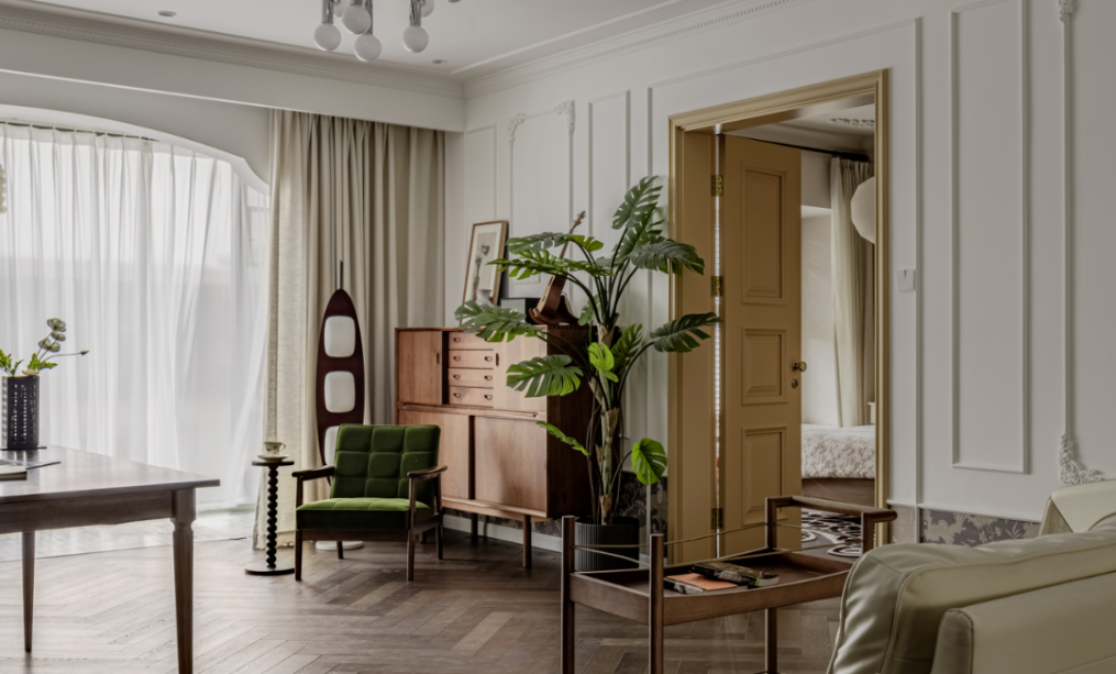 本案是一套面積為193平米的大平層,設(shè)計(jì)師用“蓼園”形容這個(gè)三代同堂之家,是希望一種生生不息的力量在這個(gè)家里蔓延。風(fēng)格選擇了比較小眾的南洋度假風(fēng),在這個(gè)家里可以看到熱帶茂盛的綠植元素,還有藤編、胡桃木等自然復(fù)古的元素,還有一些黃銅、絨等輕奢元素,共同營(yíng)造出充滿南洋風(fēng)情的自然復(fù)古、精美別致的空間氛圍。