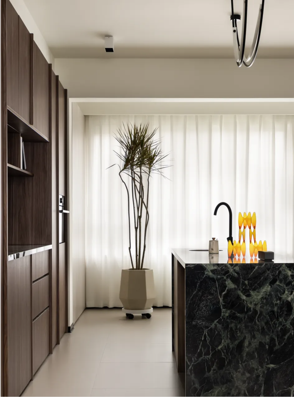 或者也可以搭配清爽干凈的綠植,進(jìn)行廚房點(diǎn)綴。